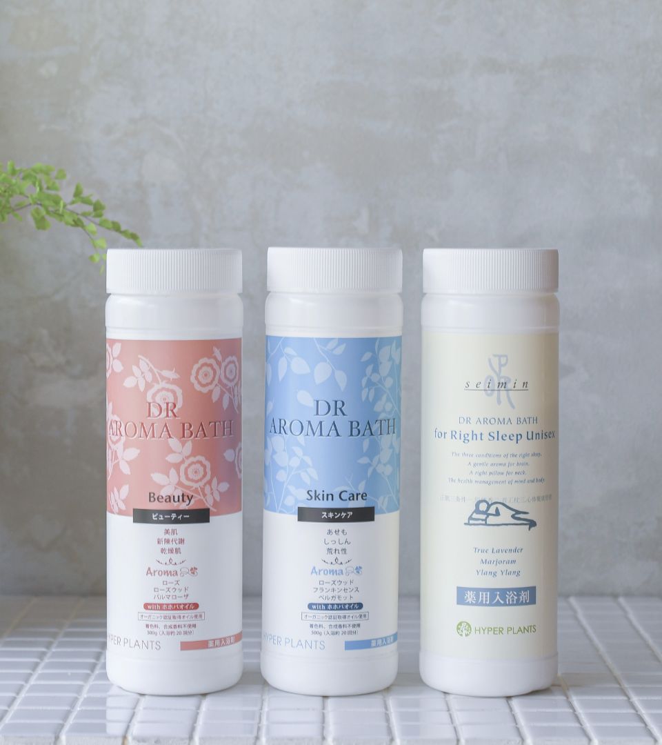 医師との共同開発により誕生したハイパープランツ薬用DRアロマバスシリーズは、高品質な天然エッセンシャルオイルのみをブレンドした薬用入浴剤です。合成香料やタール系色素は不使用です。