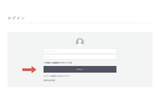 ログインページにてメールアドレスとパスワードを記入してログインボタンを押してください。