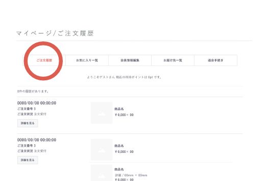 マイページに進むと上部のボタンでご注文履歴を確認いただけます。