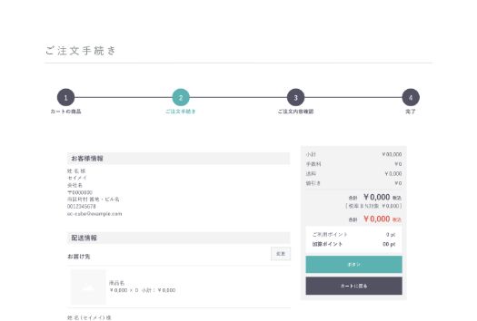 ご注文手続き画面にて、お客様情報、お支払方法、利用ポイント、クーポンをご指定ください。