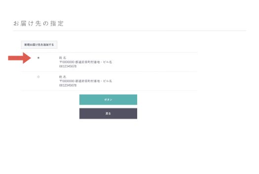 - お届け先の追加ページにて登録済みのお届け先を選んで下さい。