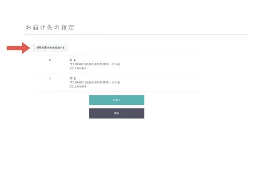 - 新たにお届け先を追加する場合は「新規お届け先を追加する」をクリックしてお届け先を登録してください。